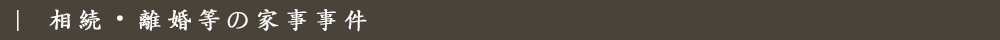 相続に関係する事件については、例えば、遺産分割の交渉・調停、遺留分減殺請求、共有物分割請求、相続放棄の申立て・限定承認の申立て等、離婚に関する事件については、離婚(夫婦関係調整)調停事件、養育費請求事件、氏の変更申立事件等様々な家事事件について、対応させていただいております。